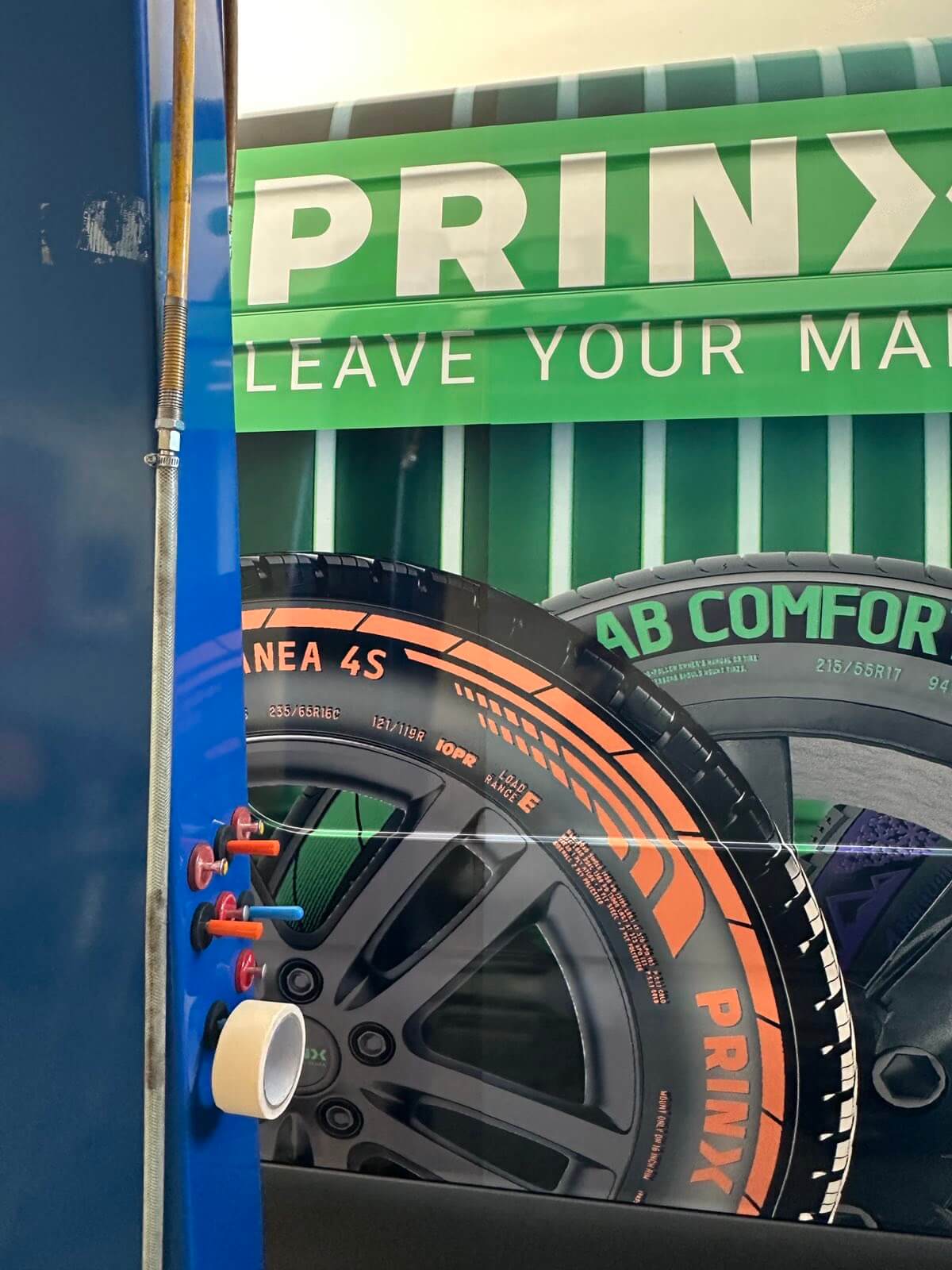 Grafika je štampana na 3M IJ180mc-10, livenoj foliji namenjenoj za postavljanje na vozila gde su potrebni brzina, repozicioniranje i dugoročne performanse. 3M IJ180mc-10 je 3D prilagodljiva livena folija, namenjena za ravne površine, jednostavne zakrivljenosti, kompleksne 3D zakrivljenosti, nitne i površine sa kanalima. Ovo je bitno jer nemaju sva vozila u voznom parku savršeno ravne panele. Folija koja podnosi složenu geometriju smanjuje naprezanje tokom postavljanja i bolje održava dugoročnu adheziju.
